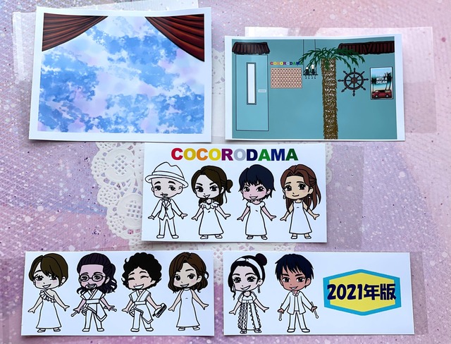 塗り絵ステッカーキット第1弾バージョンです。 ご自身で心魂プロジェクトメンバーの帽子や服、楽器などに塗り絵をし、ラミネートフィルムを貼ります。そして、ハサミやカッターで白紙の所を切ると、ステッカー完成となります。 キット内容 A4 光沢紙シート用紙 2枚 (スタジオ背景内側・外側・COCORODAMA 文字・2021年版文字・まーくん・みーちゃん・じゅんちゃん・ももちゃん・あいちゃん・つぼちゃん・たまちゃん・ひっとみー・ゆっこちゃん・りょうちゃん) A4 ラミネートフィルム 2枚 A4 説明書 1枚 価格 1200円(税込・送料込) ★スマートレターでの郵送を予定しております。 商品のお届け時期 代金のお支払い確定後、5日以内に発送いたします。 後払い決済の場合は注文確定後、5日以内に発送いたします。 ★表示されている写真は、撮影環境や撮影時の天候など、お客様の端末環境により色合いが実際と異なる場合がございますが、ご了承ください。 ★商品に欠損がある場合を除き、基本的には返品には応じかねます。